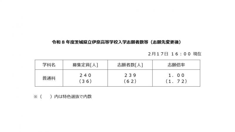 令和8年度茨城県立伊奈高等学校入学志願者数等(志願先変更後)