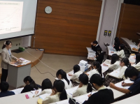 2年生対象に、大学および専門学校から講師をお招きし、大学模擬講義・専門学校体験授業を実施しました。心理学、語学、経済学、工学、教育学、看護医療系、美容理容系など19の分野から、希望する講義を2コマ受講しました。生徒たちは大学や専門学校での学びの一端に触れることができ、進路意識の向上がみられました。